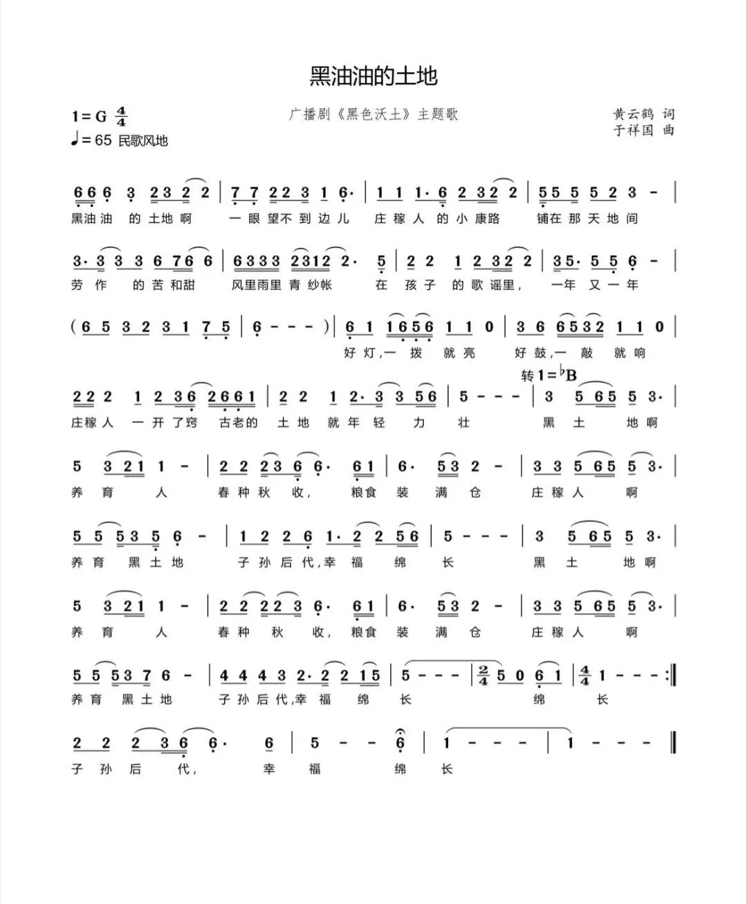主题歌《黑油油的土地》的歌词用深情的笔触将黑土地的“母体”情结和生命传承融合在一起,书写着守护这片家园的精神血脉。因此在音乐设计过程中,采用三段式的结构,即深情诉说、轻盈舞动和激情赞扬层层递进的方式,高潮处伴随转调带来的情绪上扬,《月牙五更》的变奏曲调倾泻而出,澎湃有力的高音击打着生生不息的黑土地,完成为时代而歌的历史使命!