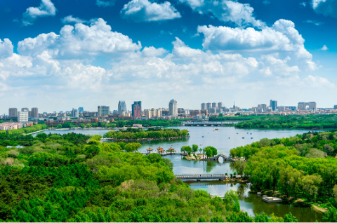 长春解放纪念碑位于长春市南湖公园北侧,是为纪念长春解放而修建的。