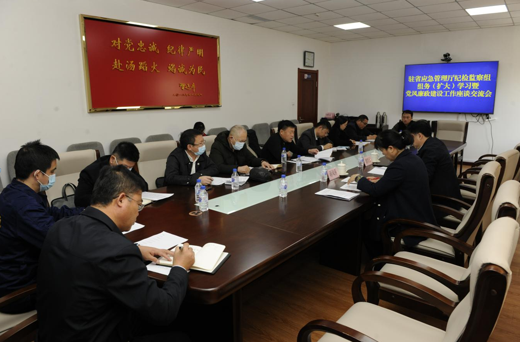 11月19日,省纪委监委驻省应急管理厅纪检监察组组织召开组务(扩大)学习会暨党风廉政建设工作座谈交流会。会上,省应急管理厅机关纪委和8个直属事业单位负责同志对一年来党风廉政建设工作情况、工作中存在的问题以及下步工作打算进行深入交流,驻省应急管理厅纪检监察组结合派驻机构职责,围绕各部门形成监督合力,提出工作建议,进行业务指导。