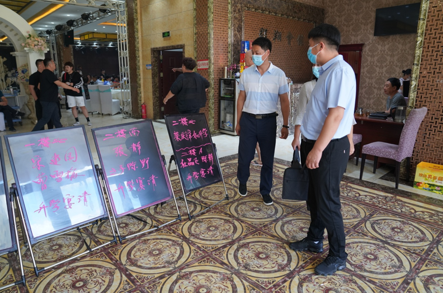 公主岭市纪委监委专项督导检查组在某大型餐饮机构暗访,检查有无违规操办“升学宴”问题。(袁宇/摄)