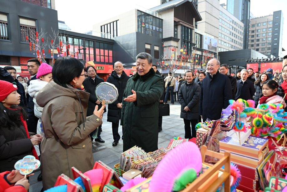 2月9日至10日,中共中央总书记、国家主席、中央军委主席习近平在北京考察并看望慰问基层干部群众。这是10日上午,习近平在东城区隆福寺街区考察时,向全国各族人民和香港同胞、澳门同胞、台湾同胞、海外侨胞致以美好的新春祝福。新华社记者 燕雁 摄
