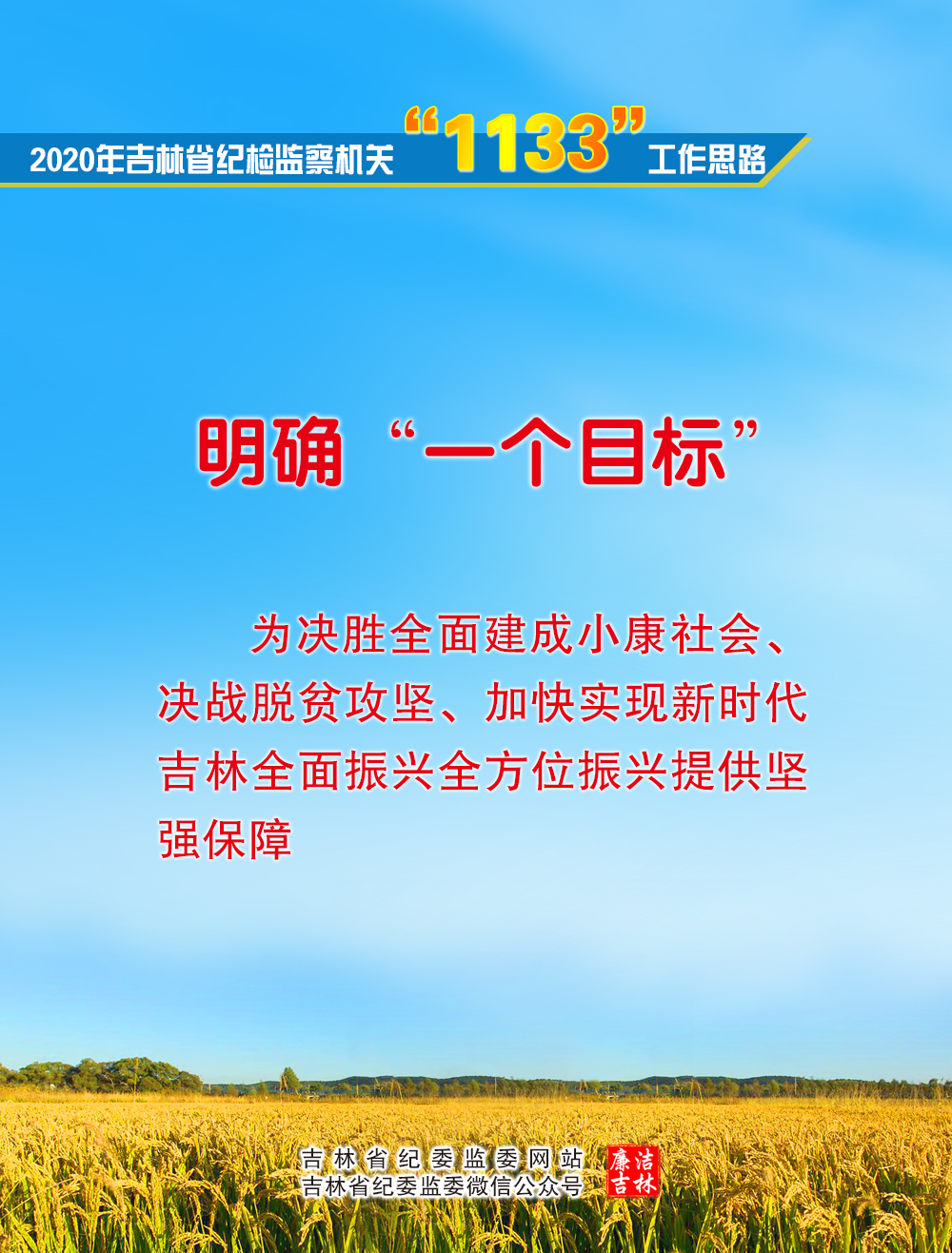 省纪委十一届五次全会提出谋划和推进纪检监察工作的“1133”工作思路,即明确“一个目标”,为决胜全面建成小康社会、决战脱贫攻坚、加快实现新时代吉林全面振兴全方位振兴提供坚强保障;贯穿“一条主线”,推动新时代吉林纪检监察工作高质量发展;突出“三项重点”,做实监督职责、健全监督体系、提升监督能力;深化“三个统筹”,就是统筹不敢腐、不能腐、不想腐,统筹纪律检查体制改革、监察体制改革和纪检监察机构改革,统筹转职能、转方式、转作风。