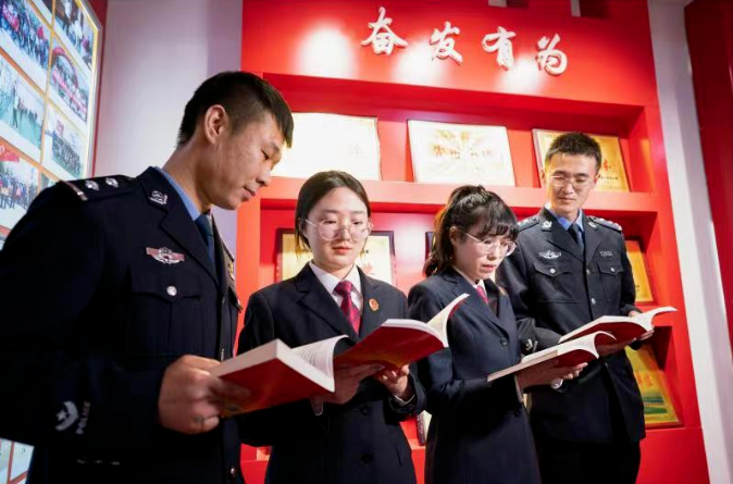 图为在珲春市纪委监委推动下,圈河出入境边防检查站与珲春市检察院共同开展廉洁读书分享会活动,提升干部廉洁意识。